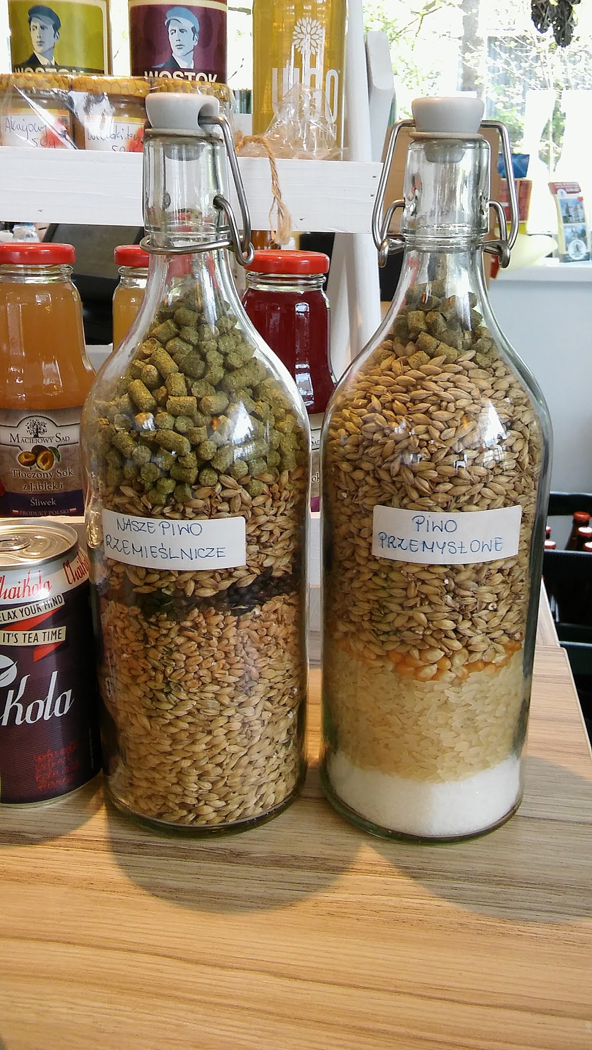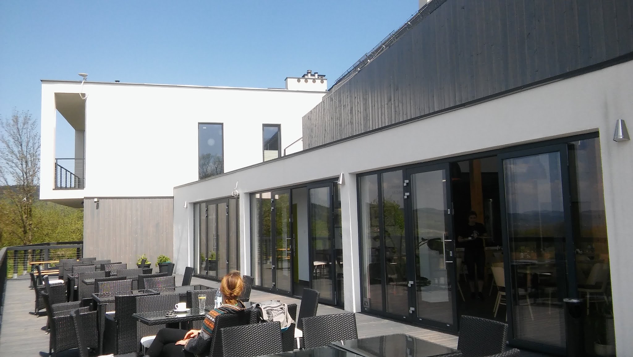 Kusiło mnie, by za wskazówkami kobiety podążyć od razu, ale K. zaoponowała, że jest głodna i jednak priorytet powinien mieć browar w Miedziance. Z trudem odwróciłam swoje myśli od celu (Skopca) i zaczęłam brnąć pod górę opowiadając zapewne szeroko o Filipie Springerze, kiedy to nagle K. szybkim jak wąż ruchem wystawiła kciuka za moim plecakiem (za moimi plecami!) i już zatrzymała się dla nas młoda, elegancko ubrana kobieta w małym samochodzie. Nie miałyśmy pojęcia, że jazda stopem do Miedzianki potrwa dokładnie 2 minuty. Kobieta powiedziała tylko „to blisko” i już stałyśmy oniemiałe przed jasnym, nowoczesnym budynkiem. Po przedostaniu się tu przez góry, ze skromnym śniadaniem, byłyśmy głodne jak wilki. K. wymarzyła sobie pieczoną golonkę i dostała ją. Trzeba było widzieć jej szczęście! Mnie aż roznosiło po tarasie, bo oto byłam w swoim miejscu pielgrzymkowym, z widokiem na „cycki”, prażona słońcem, z plecakiem, lekka i wolna. Spędziłyśmy tam całkiem długie dwie godziny, kurząc papierochy i debatując, jakie piwa wynieść w plecakach. Niestety wizja transportowania łupów na Skopiec i do Szwajcarki nie sprzyjała piwnemu haulowi. Ostatecznie Mniszek, Wołek, Cycuch i Rudawskie padły. N a p r a w d ę planowałam dowieźć któreś z nich do Krakowie i z u p e ł n i e nie wiem, co się z nimi stało!